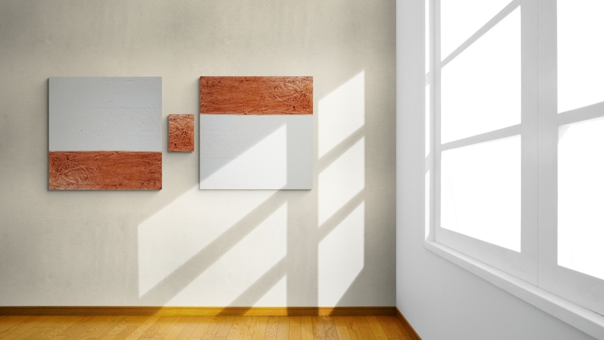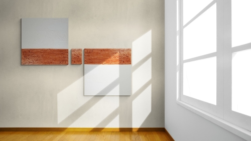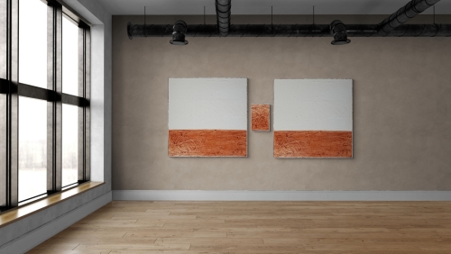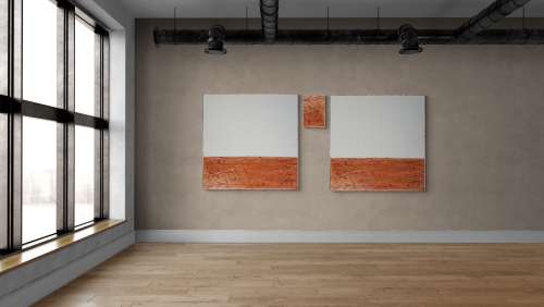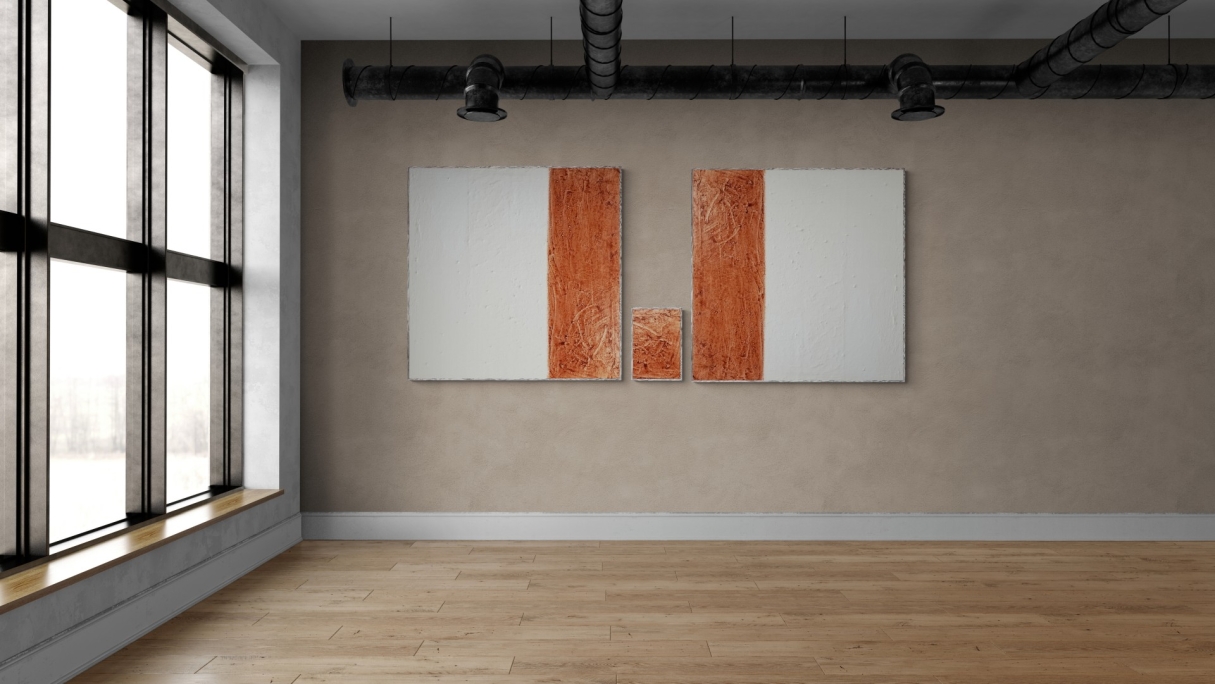 FLEXOLOGY von Marian Kainhofer ist ein 3-teiliges XL-Werk, das auf viele Arten aufgehängt werden kann, um ein Bild im XL-Format zu schaffen (bis zu über 200 cm Höhe oder Breite).