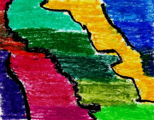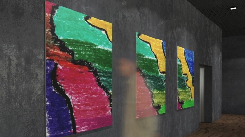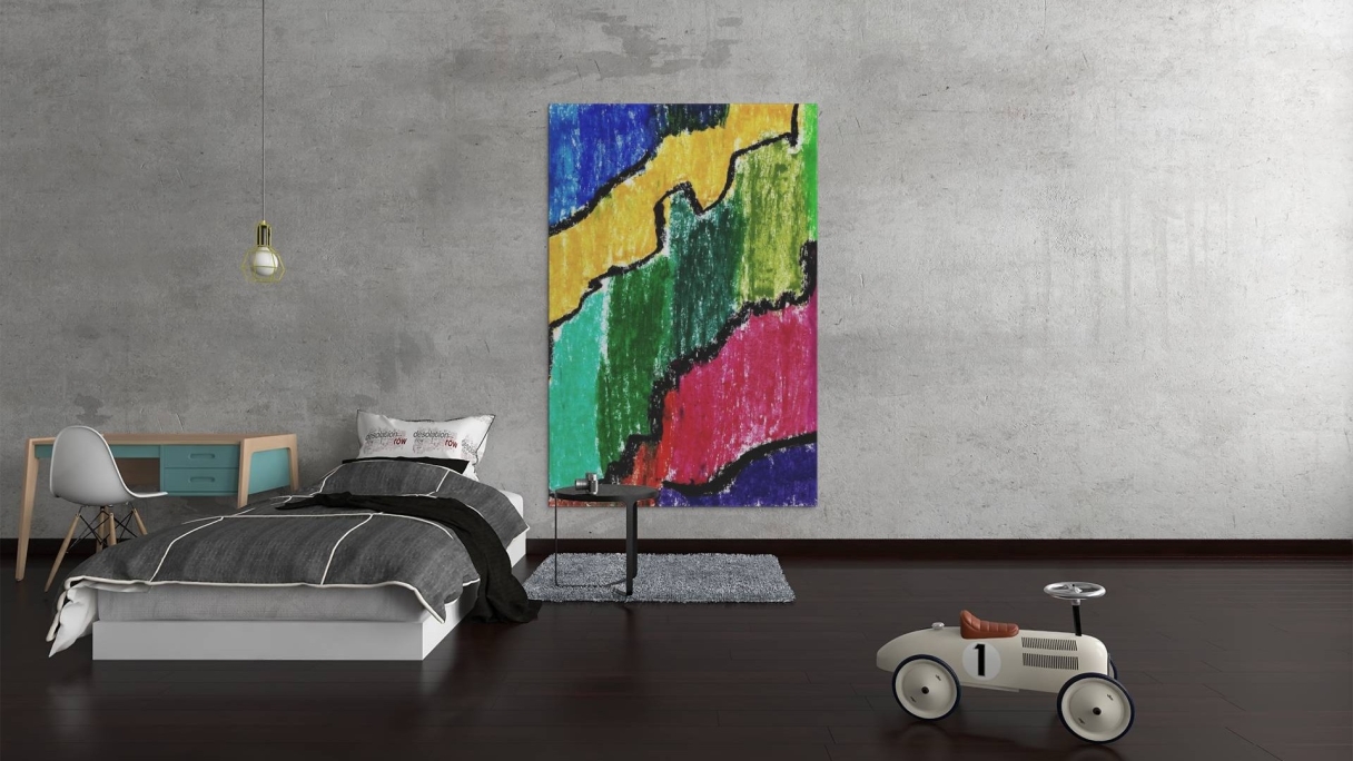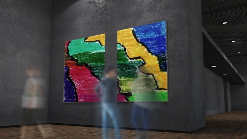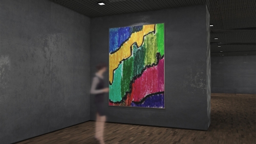 GREEN RIVER von Marian Kainhofer zeigt einen Fluss in grüner Farbe, der sich durch eine surrealistische Landschaft schlängelt.