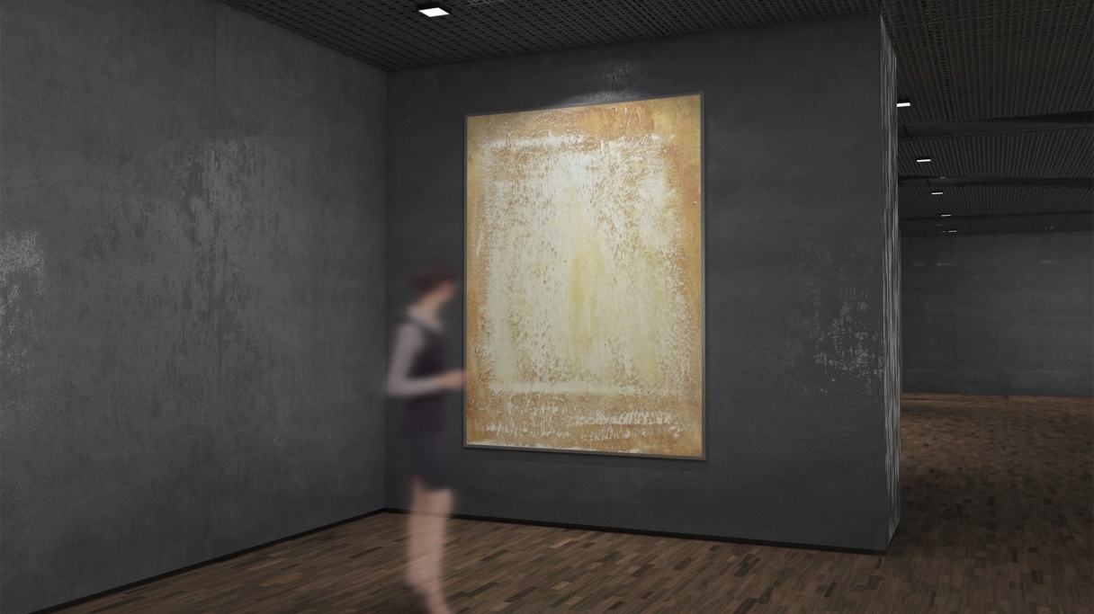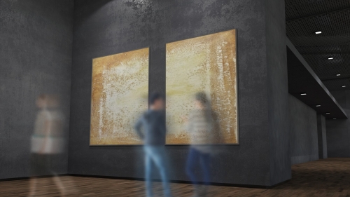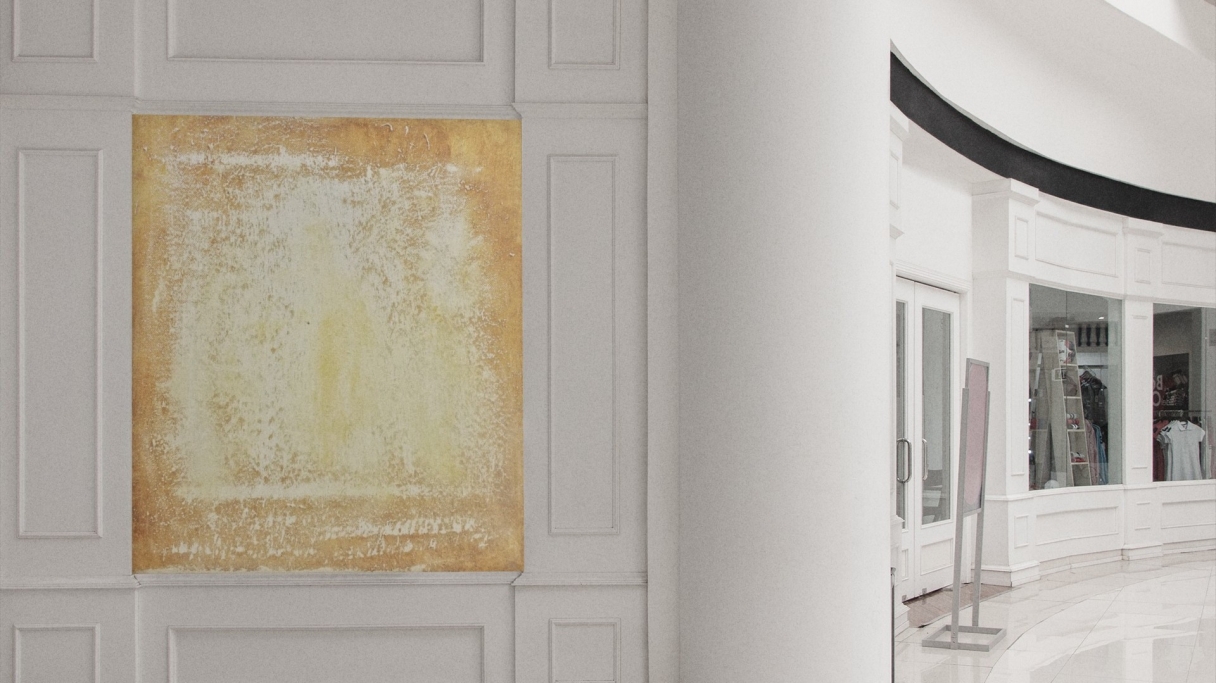 HAPPY ORANGE von Marian Kainhofer zeigt einen leuchtenden Weiß-Orange-Verlauf. Das Original hängt in einer Münchner Psychotherapiepraxis für Patienten mit Depressionen. Deshalb 'HAPPY ORANGE' ...