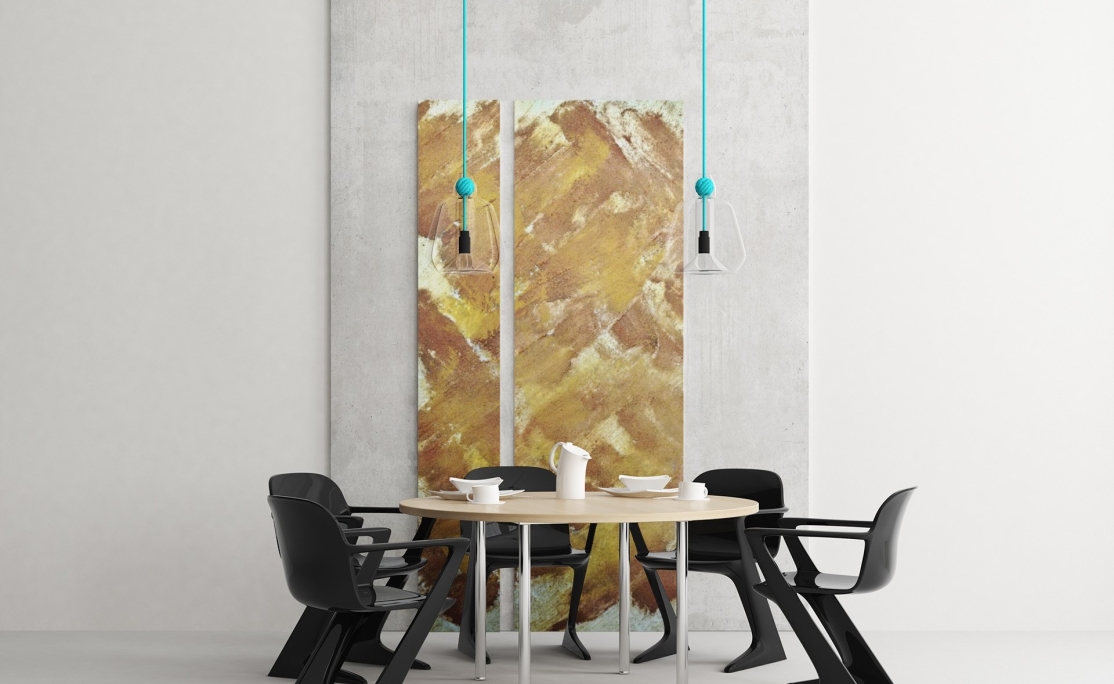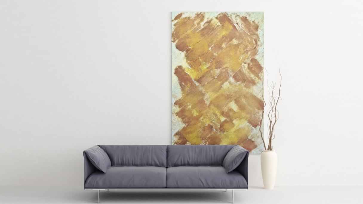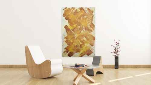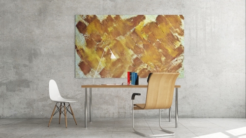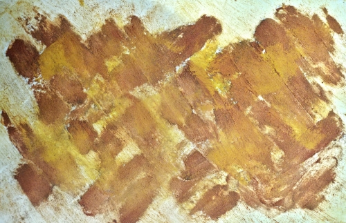 MESH | GEFLECHT von Marian Kainhofer zeigt eine Struktur natürlicher Farben. Es wurde nur mit Curry- und Chilipulver gemalt.