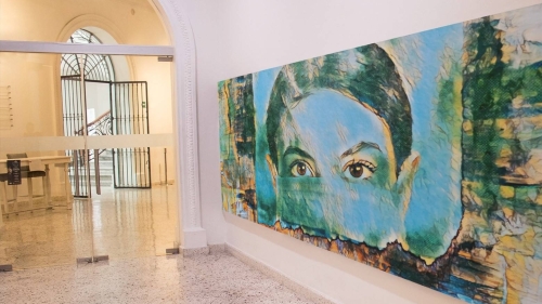 PUNKED HERO ist das einzige Bild von Kainhofer mit einem Corona-Bezug. Es zeigt eine Krankenschwester mit Maske in einer surrealistischen Umgebung.