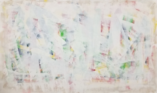 Die XL-Serie von Marian Kainhofer ist ein Zyklus von sehr großen Kunstwerken, die hauptsächlich mit einer Malerrolle gemalt werden, während sie an der Wand hängen.