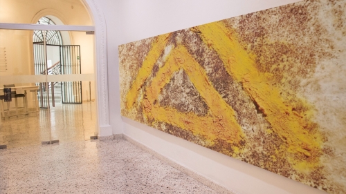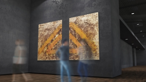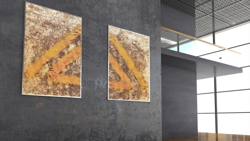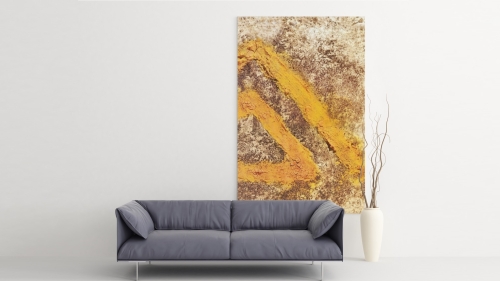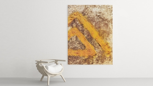 YELLOW TRIANGLES von Marian Kainhofer gehört zu einer kleinen Serie von Bildern, die ein oder mehrere Dreiecke zeigen. Das Dreieck gilt als eines der vielfältigsten Symbole, das religiöse, ideologische und mathematische Bedeutungen hat. Als geometrische Form symbolisiert das Dreieck eine Einheit. Es besteht aus drei einzelnen, aber miteinander verbundenen Linien. Alle drei Seiten werden als gleichwertig angesehen, weshalb die Linien des Dreiecks oft die gleiche Länge haben.